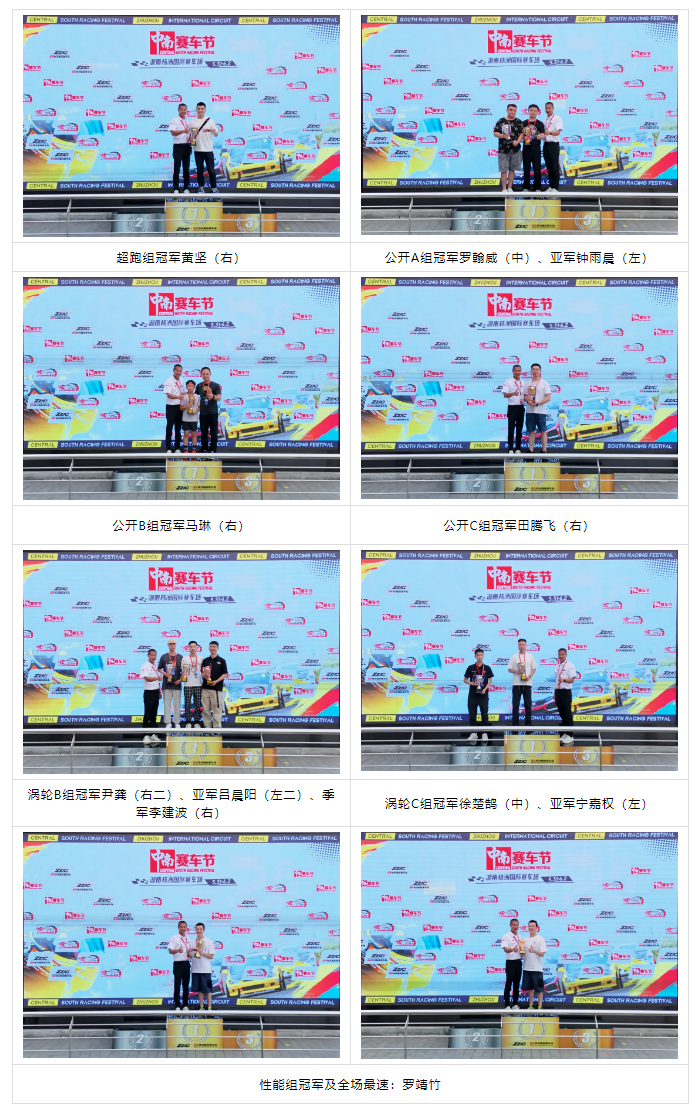 经过一番圈速较量,最终,多位选手脱颖而出,踏上各组别领奖台。