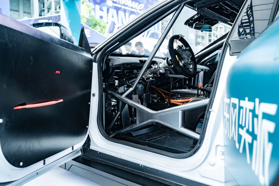 该款赛车采用了全新研发的 X Racing 电动赛车系统,采用800V电压平台,同轴双电机后轮驱动。单电机峰值功率达350kw,额定功率200kw。79kWh的赛事专用电池包,可以支持20分钟以上的冲刺赛需求。配合标准模块化防滚架及前、后双横臂推杆式悬架,整车性能预期可达到GT4水准。